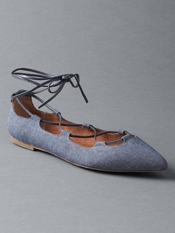 - GAP WOMEN LACE UP BALLET FLATS - DENIM