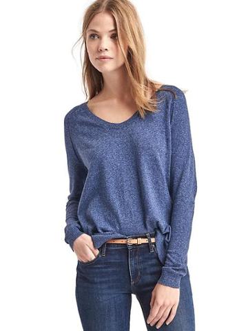 - GAP WOMEN POINTELLE LONG SLEEVE SWEATER - BLUE DENIM HEATHER