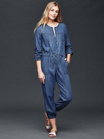 - GAP 1969 TENCEL DENIM ZIP JUMPSUIT - DARK INDIGO
