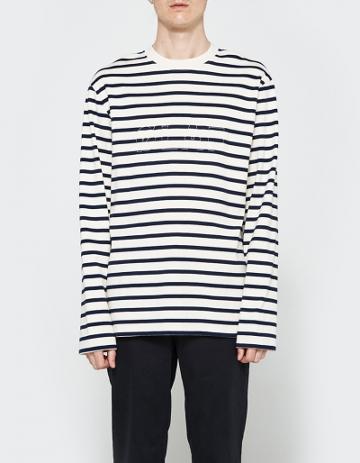 OLAF HUSSEIN STRIPED LS W/ L F BACK PRINT
