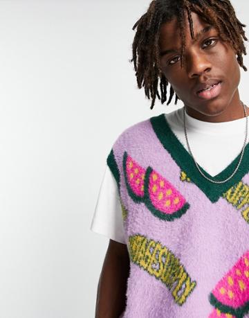 VINTAGE SUPPLY WATERMELON KNITTED VEST IN PURPLE