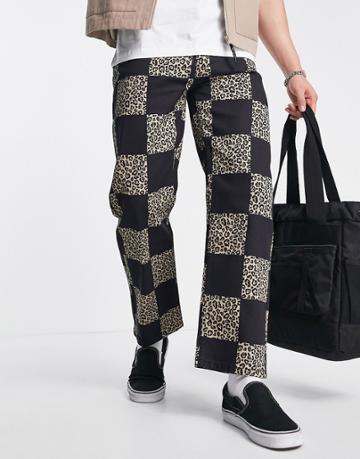 VINTAGE SUPPLY LEOPARD CHECKERBOARD JEANS IN BLACK