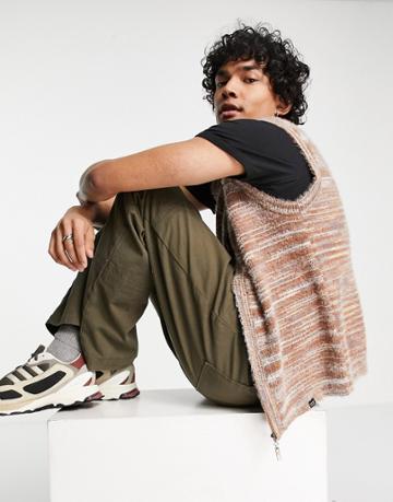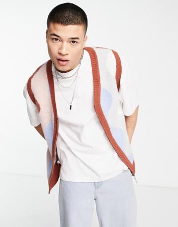 VINTAGE SUPPLY BLOCK KNITTED VEST IN BROWN