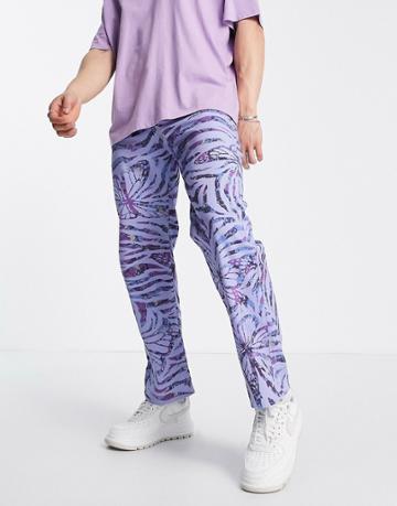 VINTAGE SUPPLY BUTTERFLY OVERDYE JEANS IN PURPLE