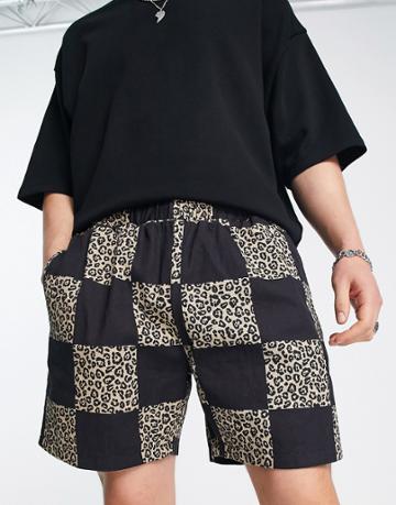 VINTAGE SUPPLY LEOPARD CHECKERBOARD SHORTS IN BLACK