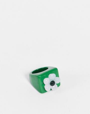 VINTAGE SUPPLY FLOWER RING IN GREEN RESIN