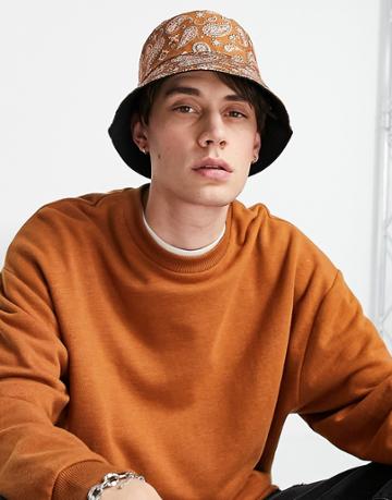 VINTAGE SUPPLY PAISLEY BUCKET HAT IN BROWN