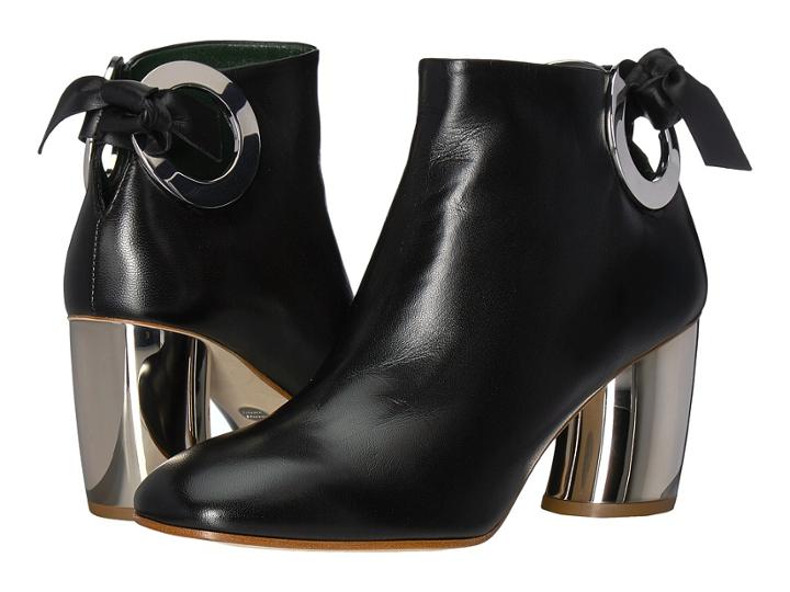 Grace the day with effortless class and style in your Proenza Schouler ankle boots. ; Rich nappa leather upper and tonal stitching. ; Tie closure at the back. ; Two circular, silver-tone eyelets in back. ; Round toe silhouette. ; Leather lining. ; Lightly padded leather insole with embossed logo. ; Cylinder heel flaunts an inset detail and silver sheen. ; Leather outsole. ; Made in Italy. ; This item may ship with an attached security tag. Merchandise returned without the original security tag attached or a damaged tag may not qualify for a refund. Measurements: ; Heel Height: 2 3 4 in ; Weight: 13 oz ; Circumference: 11 in ; Shaft: 5 in ; Product measurements were taken using size 38 (US Women's 8), width M. Please note that measurements may vary by size. ; Weight of footwear is based on a single item, not a pair.