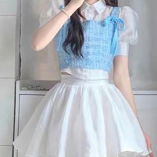 CatrionaiPuff-sleeve Shirt / Tweed Camisole Top / Mini A-line Skirt