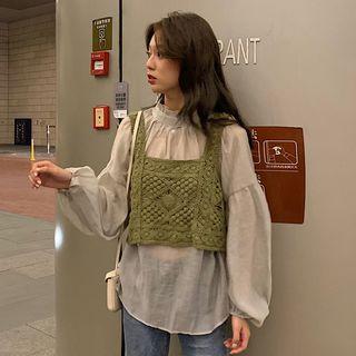 Brand from South Korea: PPGIRL. Color: Black, Khaki, White, Materials: 60% Polyester, 35% Rayon, 5% Spandex, Size: One Size: Shoulder 35cm, Bust 89cm, Sleeve 62.5cm, Arm Hole 37cm, Total Length 54cm, Care: Dry Clean