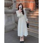 MikikoPuff-sleeve V-neck Floral Lace-up Dress