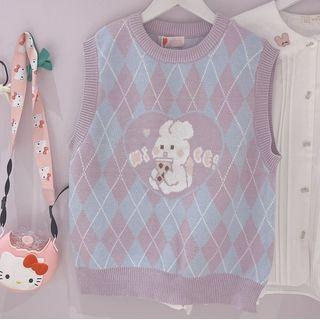 AquazineRabbit Print Sweater Vest Purplish Blue - One Size
