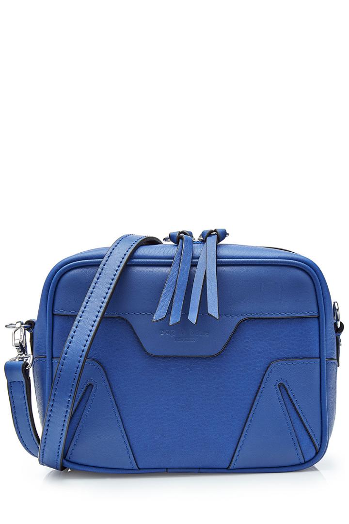 Compact and pared-back, this small leather shoulder bag from Rag & Bone will work from one season to the next - and the color is super versatile - Bright blue leather, shoulder strap with silver-tone hardware, embossed logo on front, two-way zipped top, fabric lining, internal slot pockets - Small, square shape