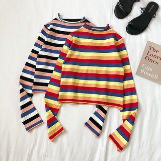 Wilder DreamsRainbow Strip Cropped Knit Top