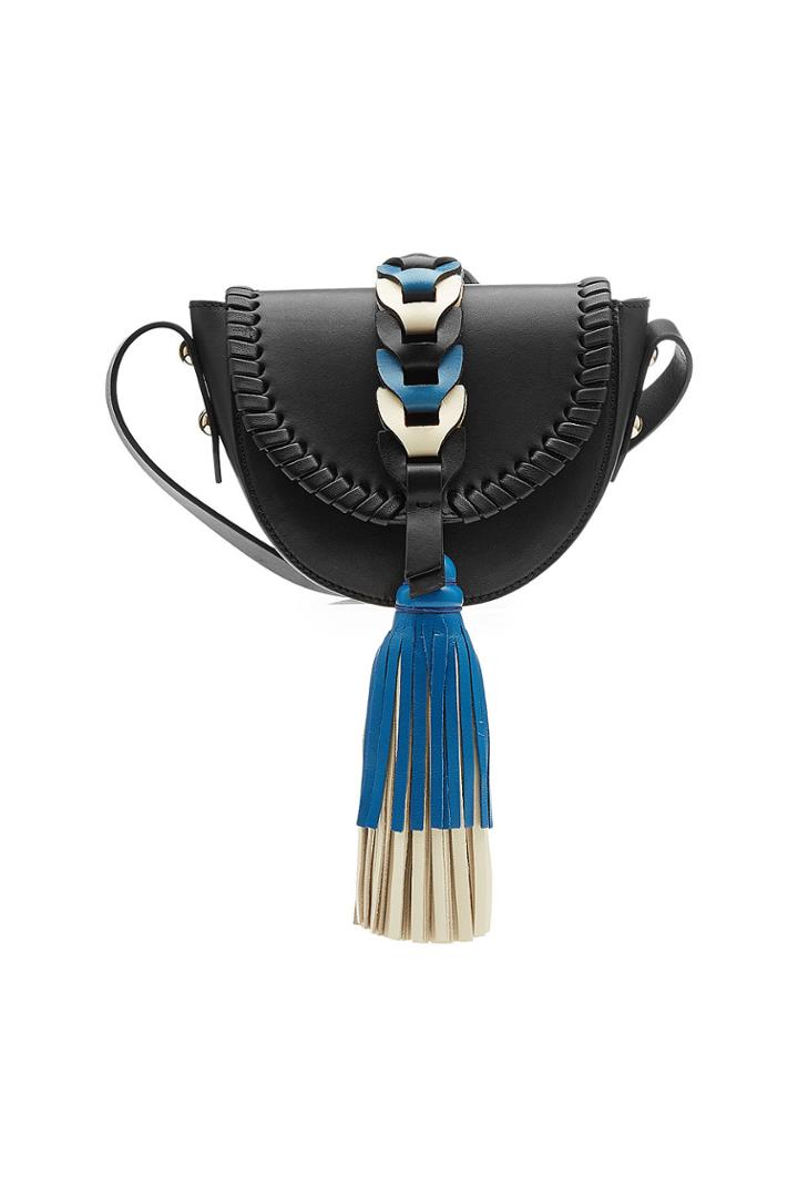 Combining black, blue and cream leather, this mini cross-body bag is a youthful accessory from RED Valentino. The tassel accent adds volume and attention-to-detail - keep it in focus with a pared-back outfit.