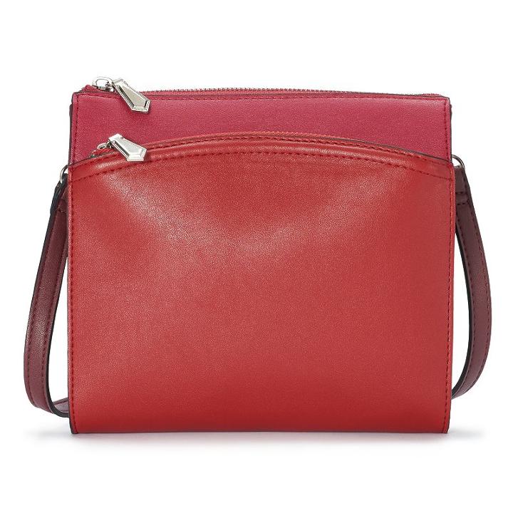 Keep your essentials organized when you're on the go with this stylish Reed crossbody bag. Handbag Features Arched front zip pocket Handbag Details 7H x 7.6W x 1.5D Approx. drop down strap length: 23.5 Zipper closure Exterior: zip pocket & slip pocket Interior: 6 card slots & 2 slip pockets Faux leather Size: One Size. Color: Red. Gender: Female. Age Group: Adult.