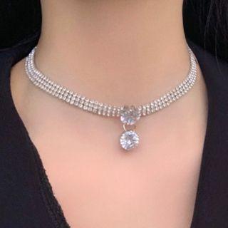 Po!ny Studio Rhinestone Pendant Choker 0684a - Silver - One Size