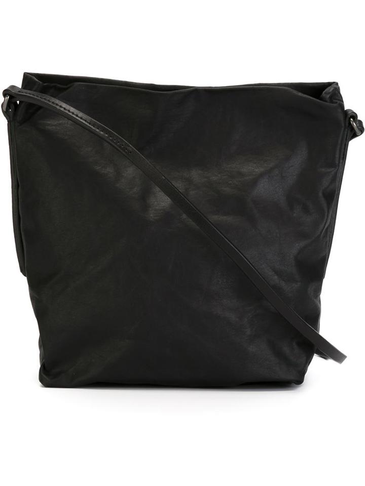 Black leather slouchy crossbody bag from Rick Owens featuring a shoulder strap, an open top design, a top magnetic closure and an internal zipped pocket. Size: One size. Color: Black. Gender: Female. Material: Leather.