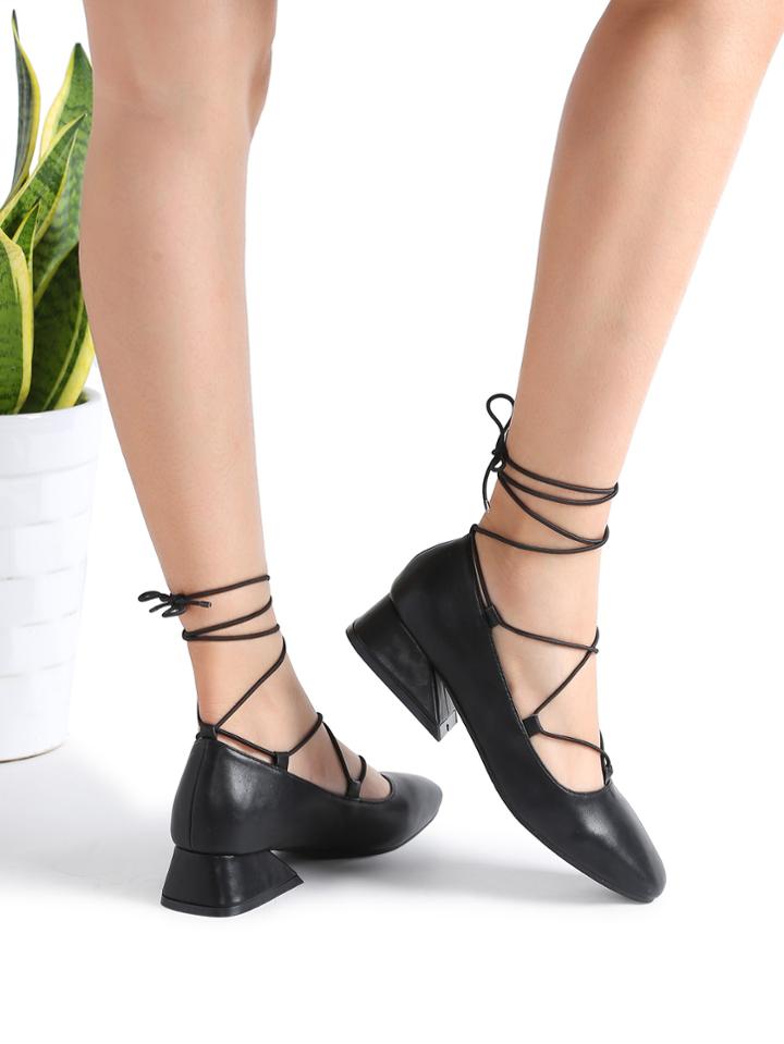 RomweRomwe Black Lace Up Chunky Heeled Pu Shoes