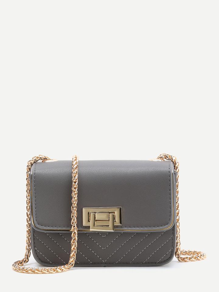 Romwe Grey Flap Pu Crossbody Chain Bag