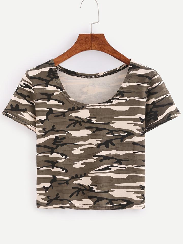 RomweRomwe Khaki Camouflage Crop T-shirt