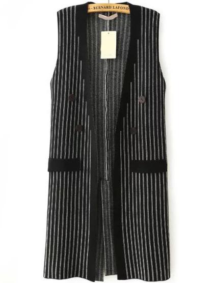 Romwe Vertical Striped Knit Black Vest