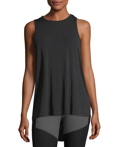 MPG Sport Rotary performance top. Crew neckline; twisted racerback. Sleeveless; cut-in shoulders. Relaxed silhouette. High-low hem; split back. Polyester/spandex. Machine wash. Imported.