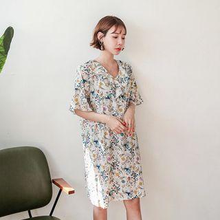 Seoul FashionRuffle-neck Pattern Shift Dress