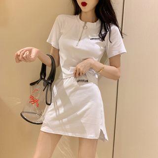Set: Lettering Short-sleeve Zip Top + Fitted Skirt