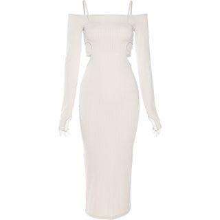 BababySet: Long-sleeve Top + Spaghetti-strap Midi Sheath Dress