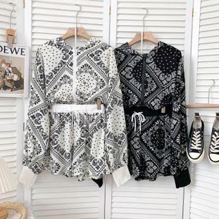 BabiqueSet: Paisley-print Hooded Jacket + Wide-leg Shorts