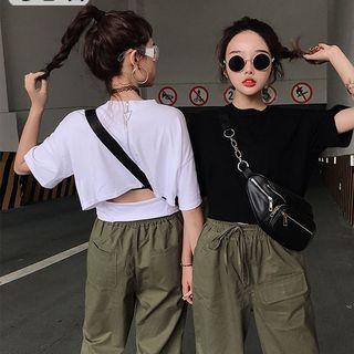 With YouSet : Short-sleeve Cutout T-shirt + Cropped Harem Pants