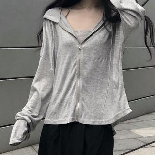 Melon JuiceSet: Zip-up Hoodie + Camisole Top Hoodie & Camisole Top - Gray - One Size