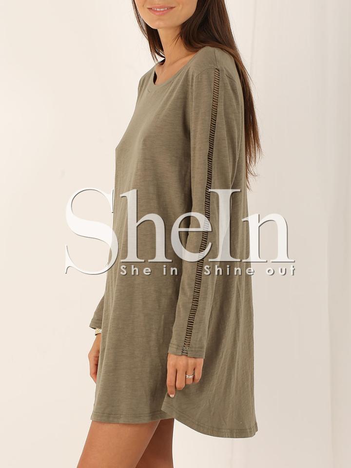SheinShein Army Green Cheesecloth Long Sleeve Casual Dress