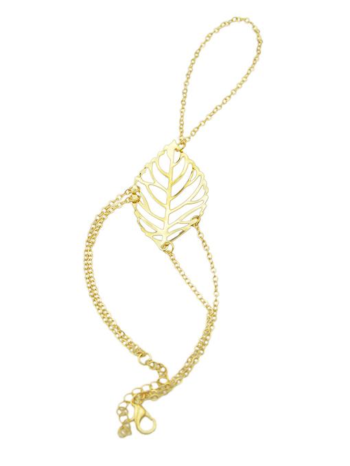 SheinShein Simple Style Gold Plated Leaf Shape Women Bracelet Ring