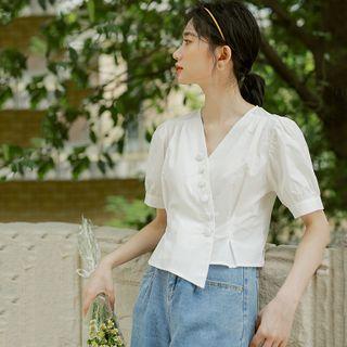 Lady JeanShort-sleeve Asymmetric V-neck Cropped Blouse