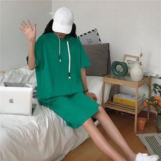 FancymeShort-sleeve Drawstring Hooded T-shirt Dress