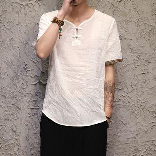 AozoraShort-sleeve Frog Buttoned Linen T-shirt