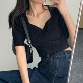 EnokiShort-sleeve Knit Cropped Blouse