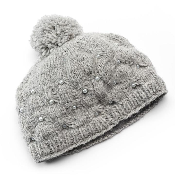 This elegant Sijjl beanie gives you look a feminine touch with beaded detailing and a pom-pom accent on top. In gray. Pom-pom and beaded details Cable-knit design Fleece lining One size fits most Fabric & Care Wool, polyester Spot clean Imported Color: Grey. Gender: Female. Age Group: Adult. Material: Fleece/Wool/Knit.