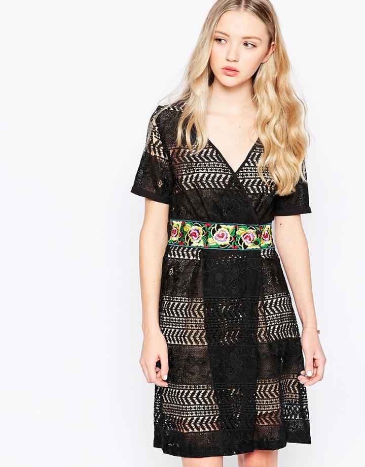 Casual dress by sister jane Lightweight crochet knit Contrast lining V-neckline Wrap front Wide embroidered band Stretch insert to waist Regular fit - true to size Dry clean 100% Polyester Our model wears a UK S/EU S/US XS and is 170cm/5'7 tall