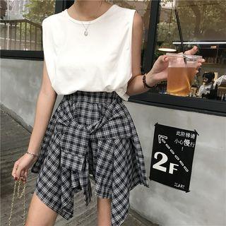 MeloneSleeveless T-shirt / Plaid A-line Hanky Hem Skirt
