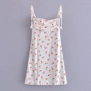 OmeliaSpaghetti-strap Floral Knit Mini A-line Dress
