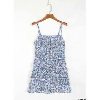Soleil 1990Spaghetti Strap Floral Shirred Mini Dress