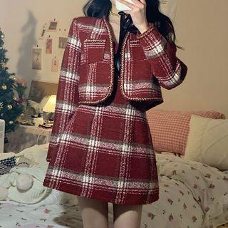 SigasunSpaghetti Strap Plaid A-line Dress / Jacket