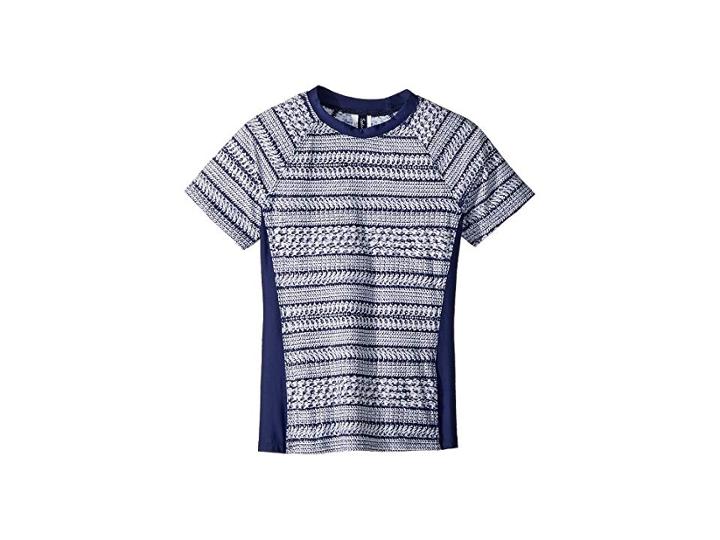Paint a picture of swim chic in the Splendid Littles Nautical By Nature Surf Shirt. Surf shirt features a lightly fitted rashguard silhouette. Solid panels complement the allover parallel striped print. Lightweight quick-dry swim fabric in a comfortable stretch knit. Mock neck. Short raglan sleeves. Contoured side seams. Straight hemline. 83% nylon 17% elastane. Hand wash cold and dry flat. Made in the U.S.A. Measurements: Length: 19 in Product measurements were taken using size 8 (Big Kids). Please note that measurements may vary by size. If you're not fully satisfied with your purchase you are welcome to return any unworn and unwashed items with tags intact and original packaging included.