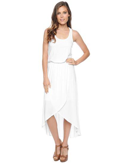 FINAL SALE Bright white Ethereal dress Casual chic elegance On-trend tulip hem detail Perfect for accenting with statement jewelry and accessories Regular fit Round neckline Sleeveless Cinched at elastic waist High low tulip hem Model Measurements: 5'9, 34-23-34, size XS