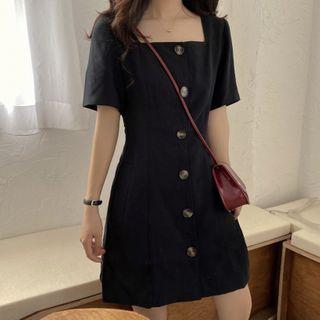 KongerSquare-neck Short-sleeve Single-breasted Mini Dress Black - One Size