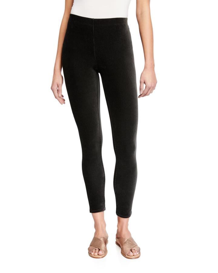 Vince corduroy leggings with subtle stretch. Approx. measurements: 8.5 rise; 27.5 inseam; 36 outseam. Sits below natural waist. Fitted through skinny legs. Pull-on style. Full-length. Cotton/nylon/spandex. Hand wash or dry clean. Imported of Italian materials.