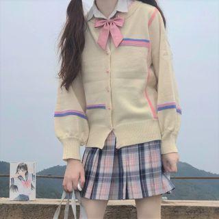 Lady SugaStriped Cardigan Pink & Blue Stripes - Yellow - One Size